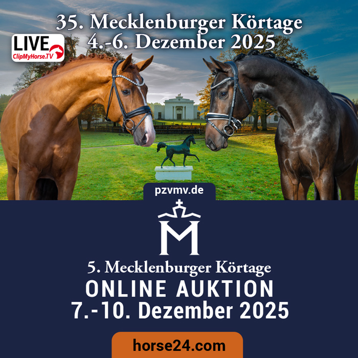 Sie sind herzlich eingeladen die Hengste live in Redefin, auf den Mecklenburger Körtagen vom 04. bis 06. Dezember 2025, zu besichtigen. Freuen Sie sich auf eine lockere und familiäre Atmosphäre, die diesen Körplatz so einzigartig macht. Sollten Sie nicht anwesend sein können, übertragen wir die Körtage via Livestream auf ClipMyHorse.TV.